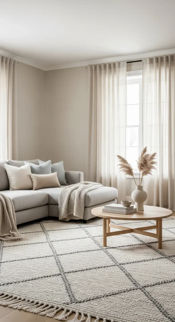 • Add area rugs to ground the space and bring texture underfoot.