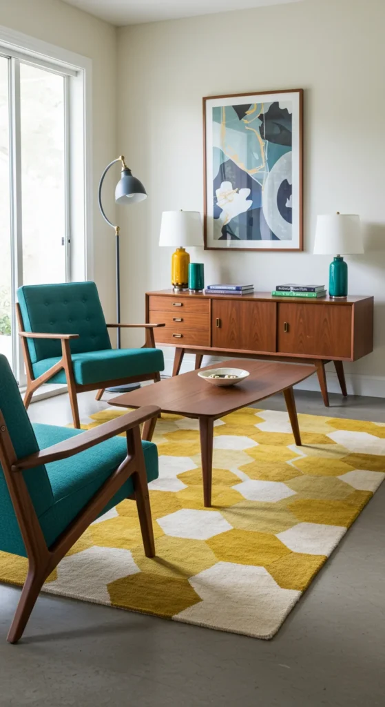The key is to balance patterns—pair bold rugs with simpler furniture and vice versa.