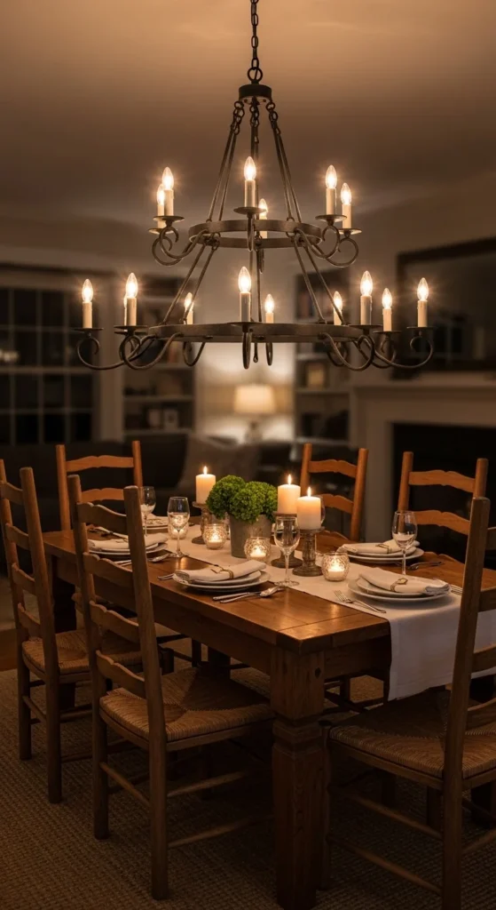 Choose wood-metal combos, rustic lantern pendants, or warm globe lights.