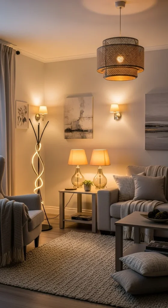 - Ambient lighting (floor lamps, sconces, LED strips)