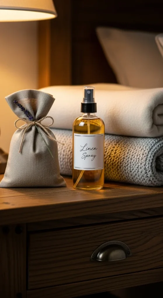 Soft fragrances like chamomile or cedar make bedtime feel extra cozy. Keep a linen spray handy for your sheets or a small sachet inside your drawer for subtle scent layering.