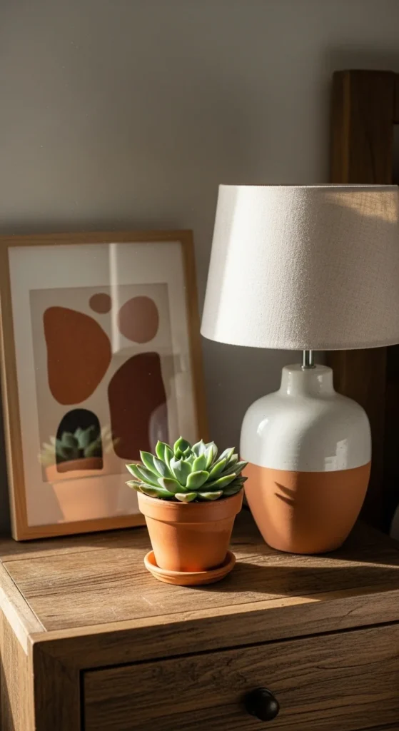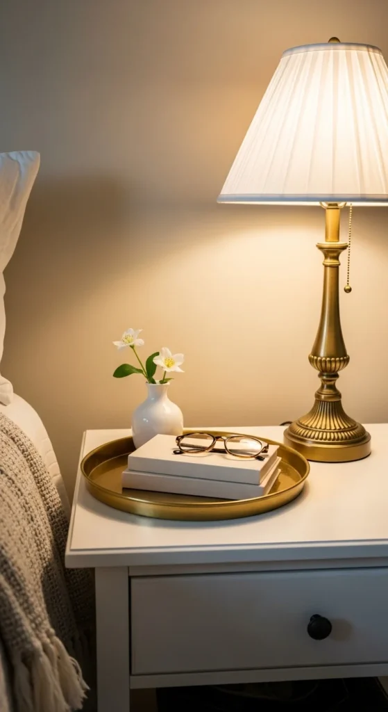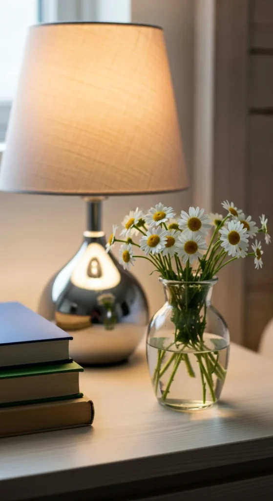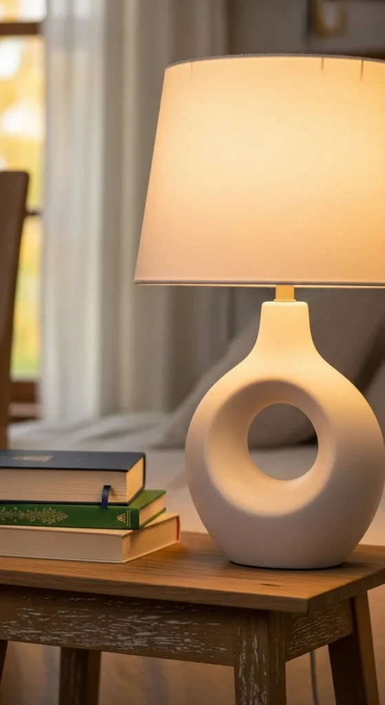 The lamp base itself can be a design feature. Textured ceramic, clear glass, or metallic finishes all add subtle character. Swap lampshades for new tones when you want a mini makeover.