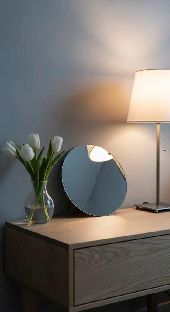 A mirror reflects light, making small rooms feel bigger. Choose round or arched designs for softness. It also adds a bit of glam without being overwhelming.