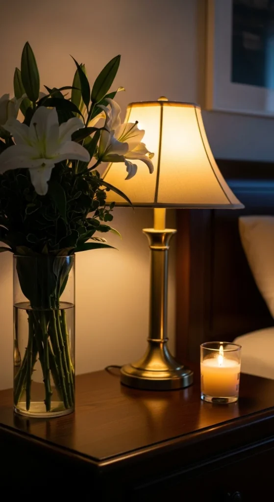 Don’t be afraid to experiment with color. Try one bold piece—like a lamp base, vase, or floral bouquet—to add personality. Keep the rest neutral to avoid visual clutter.