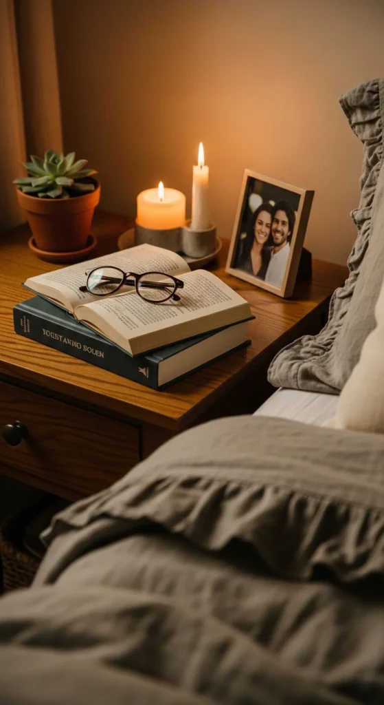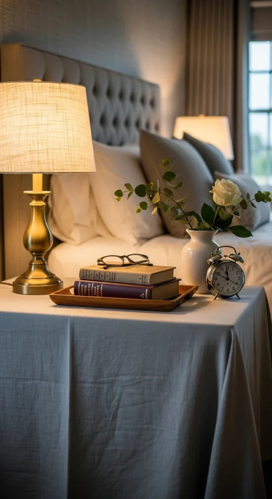 Your bedside table should reflect you. Whether it’s a favorite candle, journal, or framed quote, keep items that bring calm and joy. Edit regularly—less clutter, more meaning.