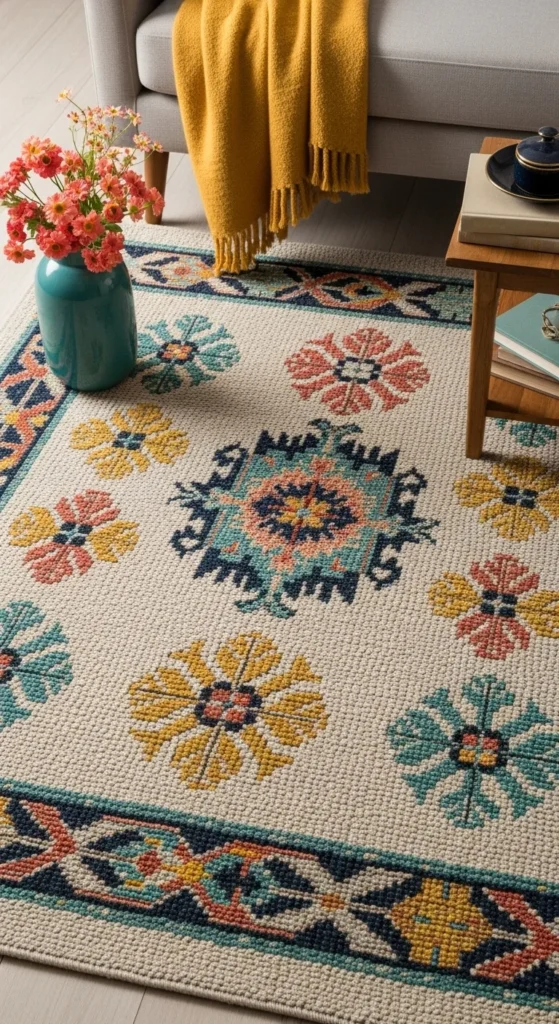 - 30% – Secondary color (curtains, rugs, mid-size accents).
