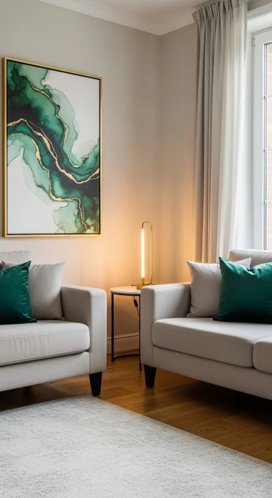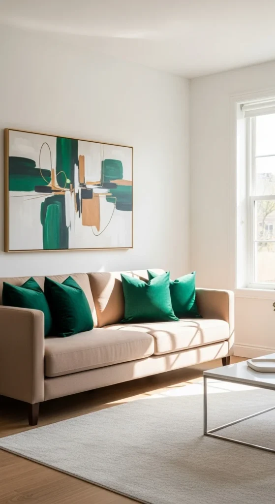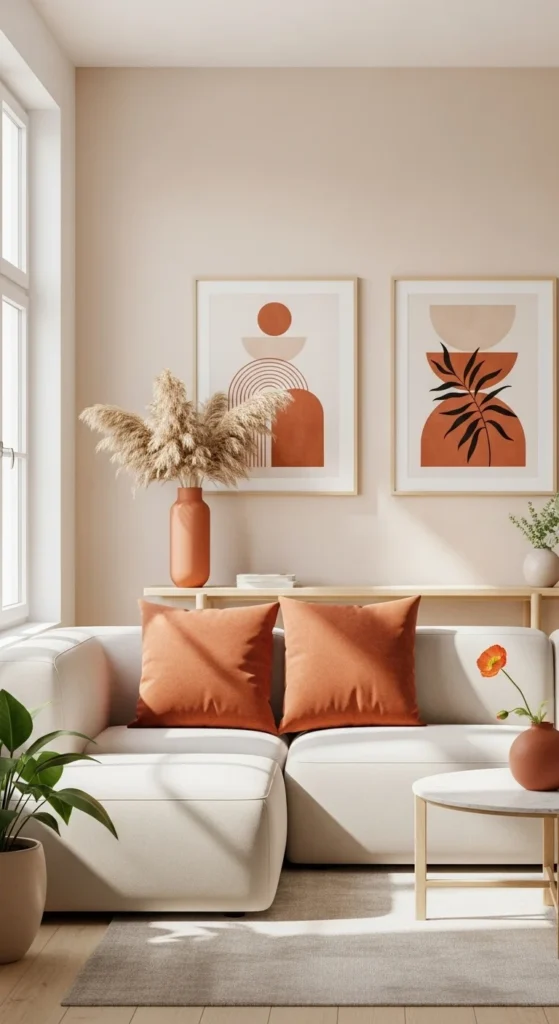 - 10% – Accent color (pillows, artwork, vases, or decor pieces).