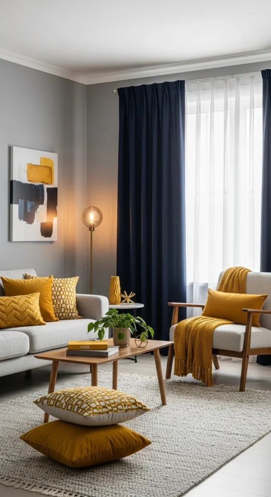 For example: A light gray living room (60%) with navy curtains (30%) and mustard yellow cushions (10%) instantly feels stylish and intentional.