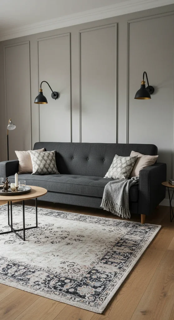 - For a harmonious look, pick a shade that complements your wall and floor tones. A light gray sofa pairs well with white walls and light wood floors.