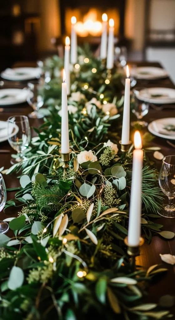 14. Greenery Garland Woven with Taper Candles