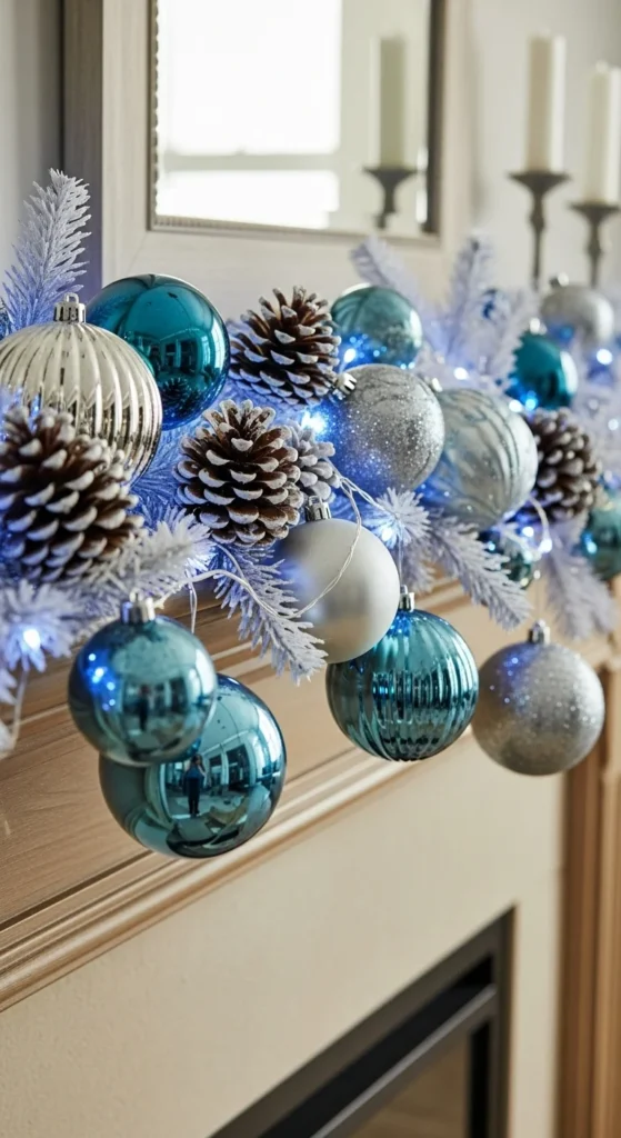Blue brings a refreshing twist to traditional Christmas decor. Combine icy blues and silvers with white garland or frosted accents. Add glass ornaments or silver ribbons for extra shine. The cool color palette feels crisp and modern, like a frozen wonderland.