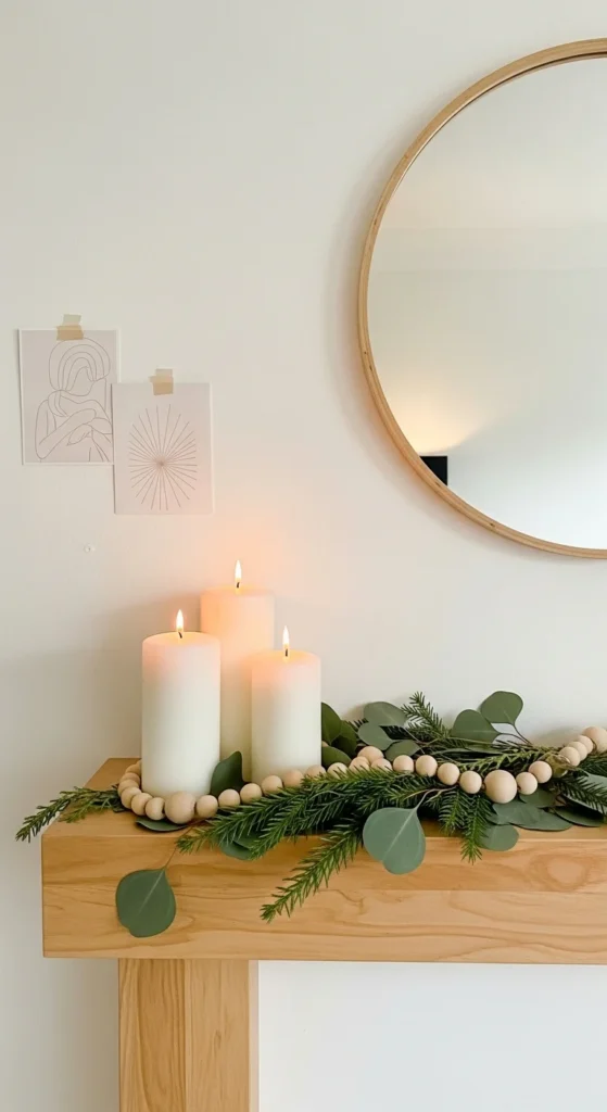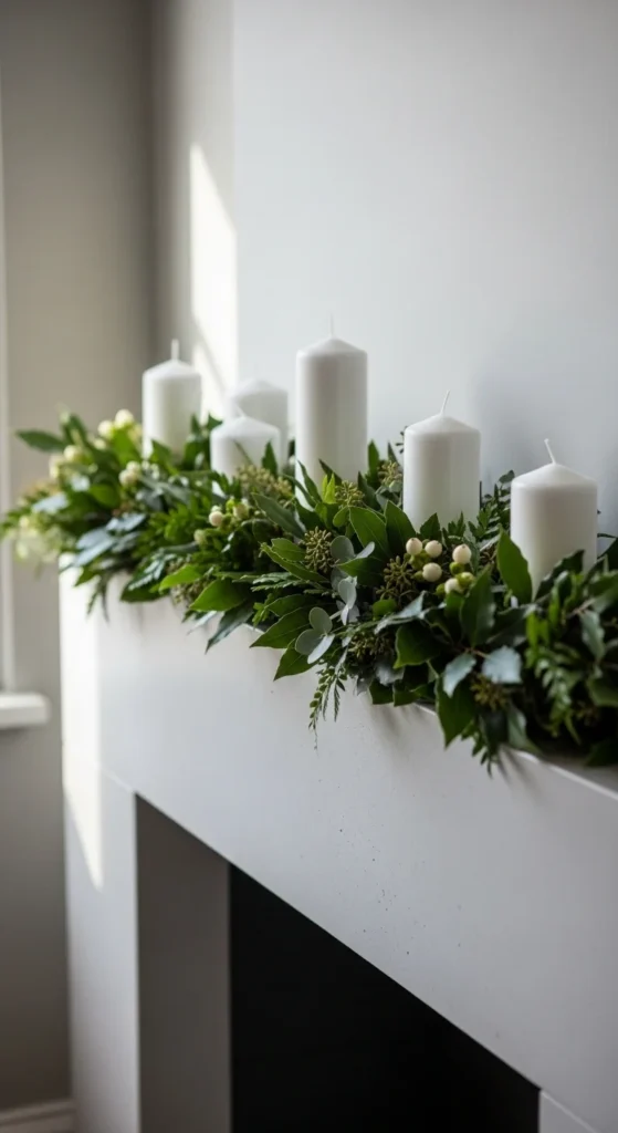 For a clean, modern look, go minimalist. Use one strand of full greenery and a few well-placed candles. Skip the ornaments and let the textures shine. This look is serene, natural, and effortlessly elegant—proof that simplicity can still dazzle.