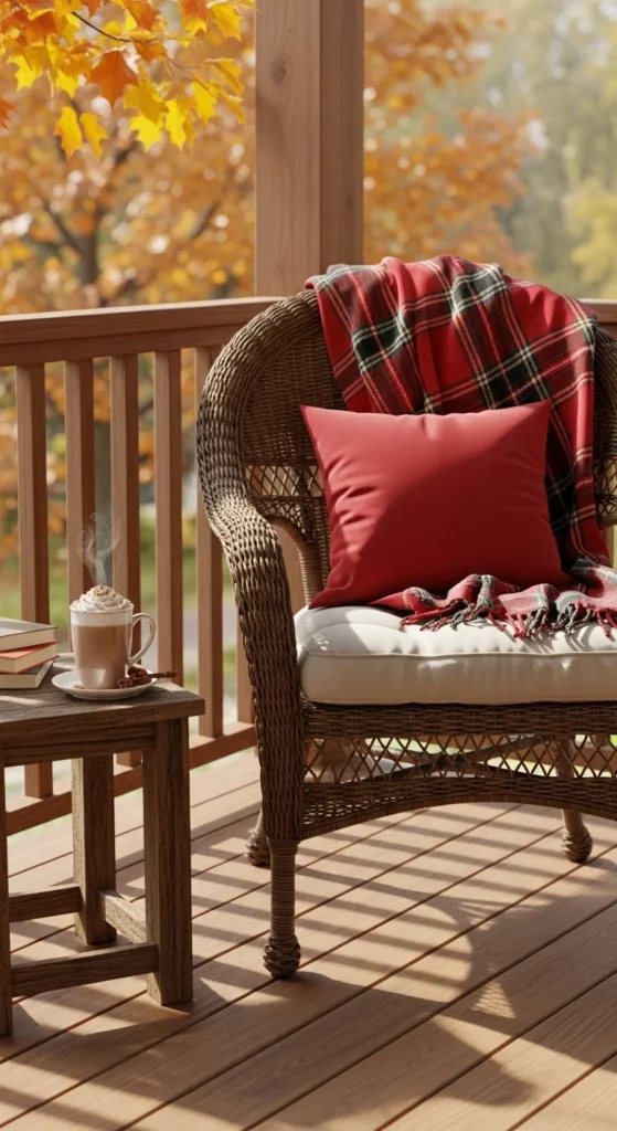 Make your porch an extension of your living space. Add a chair or bench with cozy blankets and pillows. Keep colors festive—red, white, or green. A small side table with a lantern or mug adds a welcoming touch. Perfect for sipping cocoa while admiring your decorations.