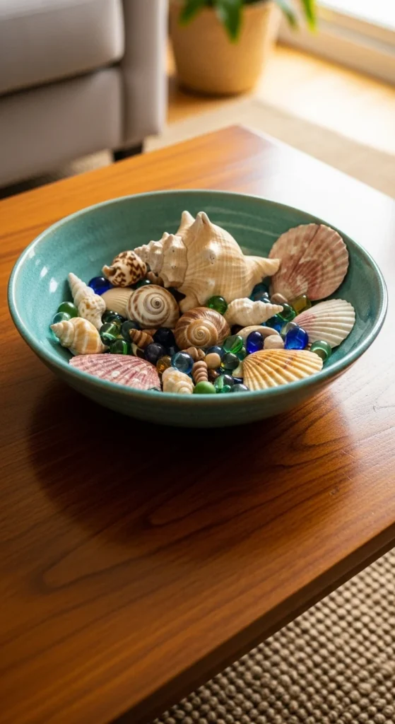 Bowls are functional and pretty. Fill them with beads, stones, or small trinkets. For a personal touch, display souvenirs or travel keepsakes that tell a story.