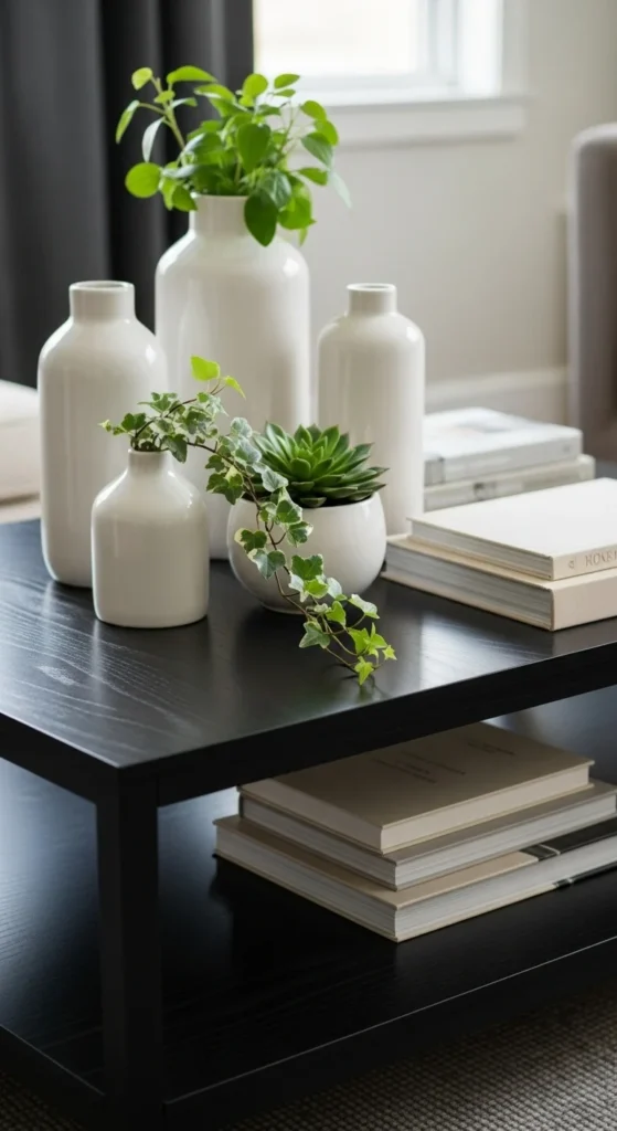 Plants bring natural beauty indoors. Use succulents or trailing ivy for a refreshing touch. Group them with books or decor to create a balanced mini vignette.
