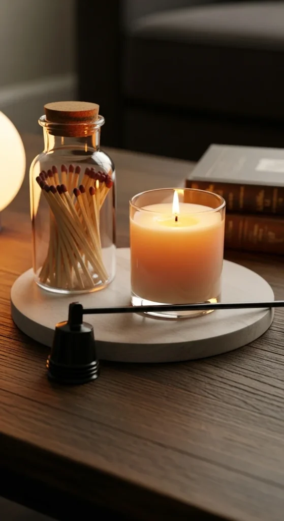 Small accessories make your setup feel intentional. A chic candle snuffer or pretty match jar adds style while serving a purpose.
