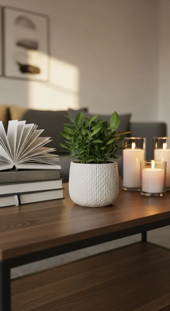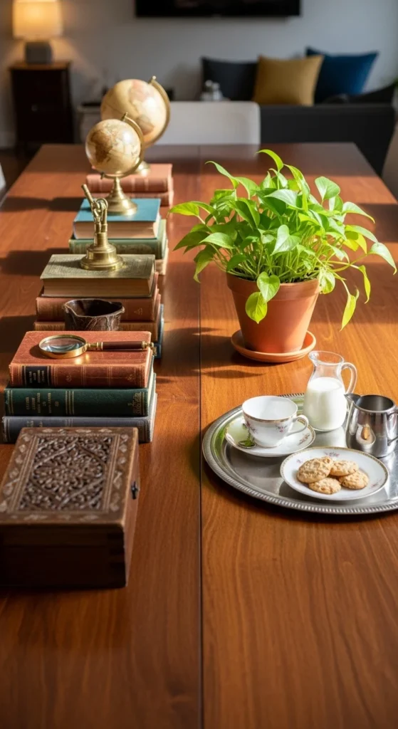If your table is large, divide it into sections. Each area can feature a mini vignette—books on one side, a tray or plant on the other. This structure keeps it cohesive.