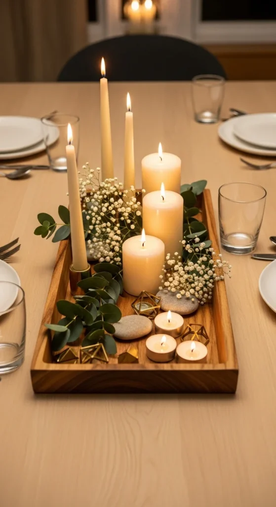 You can mix greenery with candles or decorative objects for a balanced arrangement.