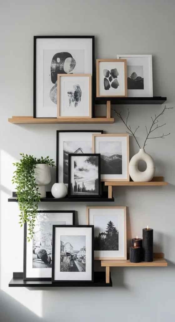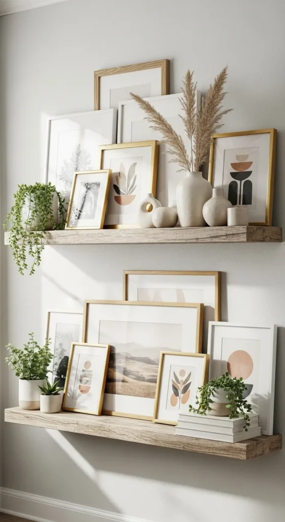 Don’t be afraid to mix old and new pieces. The charm of gallery shelves comes from the personality they bring to your space—not the perfection.