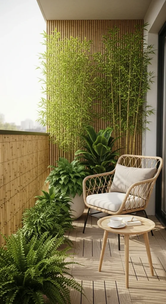 Privacy elements also soften the balcony visually and add a natural, calming feel.