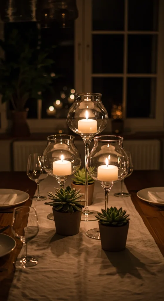 - Vary heights with taper candles, votives, or lanterns for a layered effect.