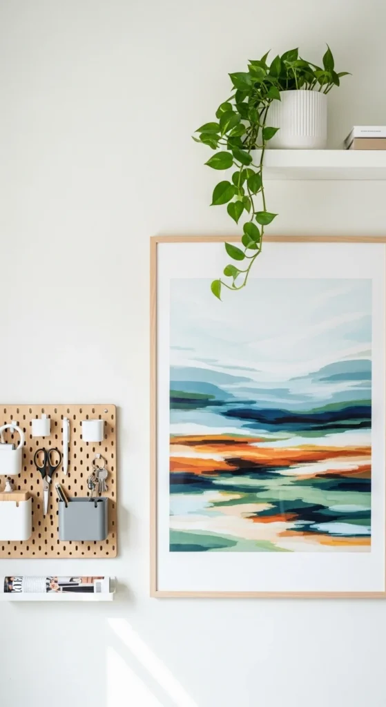 To keep your workspace efficient and tidy, integrate functional wall pieces that also look stylish.