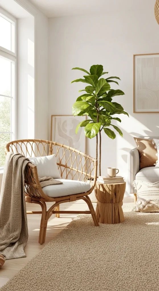 Nature is full of beautiful neutrals—think wood, rattan, clay, and greenery. Bringing these materials indoors instantly adds life and comfort to a neutral room.