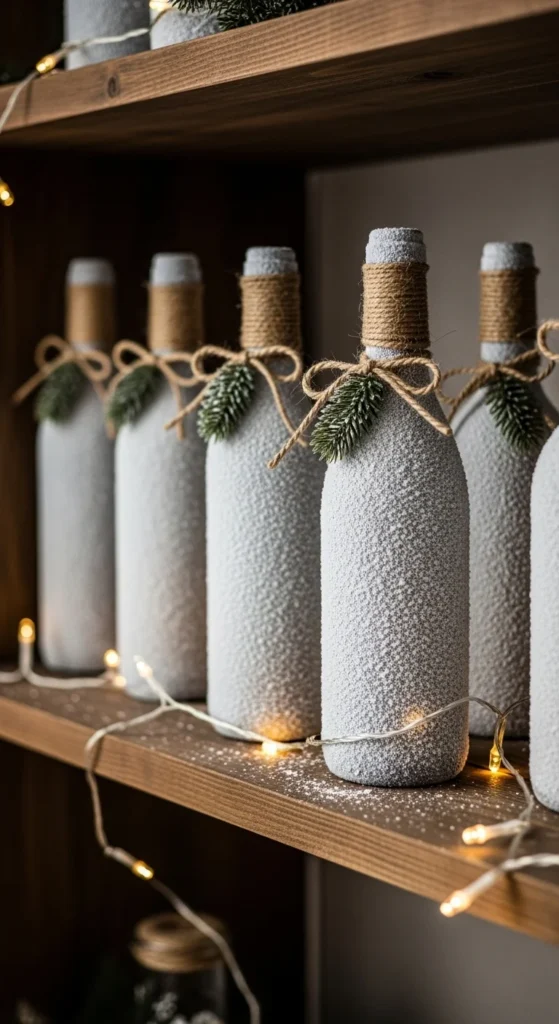 17. Snowy Wine Bottle Decor