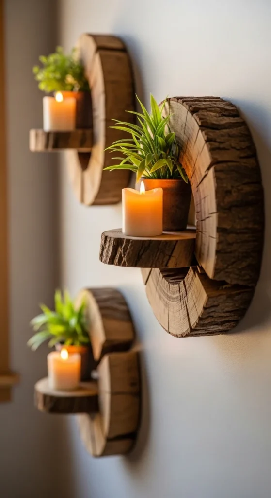 Small scrap-wood shelves offer quick decoration without requiring tools beyond basic glue or nails. Cut leftover wood into short pieces and sand the edges. Mount them in staggered rows to hold tiny plants or trinkets. Keep the finish raw for a simple look. If you want color, use leftover wall paint instead of buying new supplies. Try grouping three to five shelves for a balanced display. This setup works well in entryways, bathrooms, or above desks. Use lightweight items to avoid stress on the wall. If you’re renting, use adhesive strips instead of screws. These shelves cost almost nothing and still create a clean display that looks handmade instead of store-bought.
