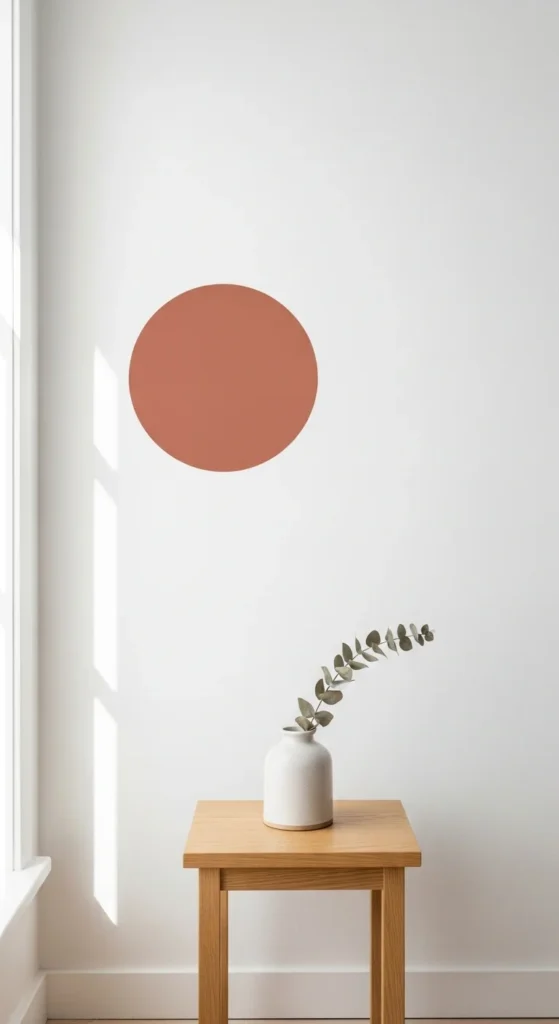 Mark a circle with string and a pencil. Paint it in a calm shade behind a lamp or chair. The circle works as a backdrop while adding shape to an empty wall. This simple project takes less than an hour and uses very little paint. It’s ideal for renters if you choose removable paint.