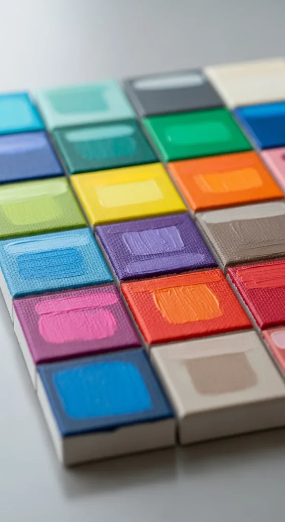 Small canvases are cheap and easy to paint. Create color blocks using masking tape. Stick to two or three shades. Arrange them in tight rows for a clean look. This works well above a console table or shelf.
