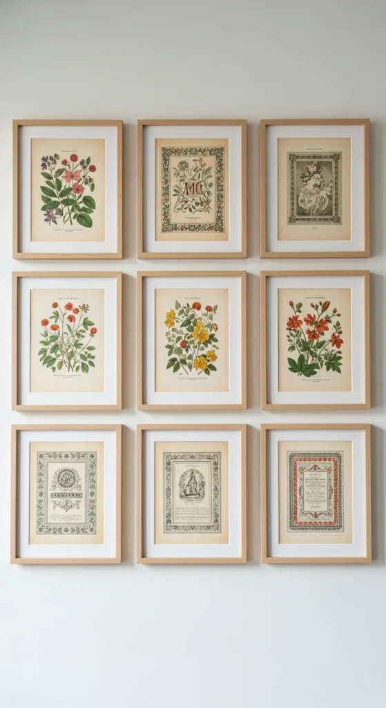 Old damaged books can become décor. Tear out pages with interesting illustrations or typography. Frame them or mount them on cardstock. Arrange multiple frames in rows. It looks thoughtful without spending money.