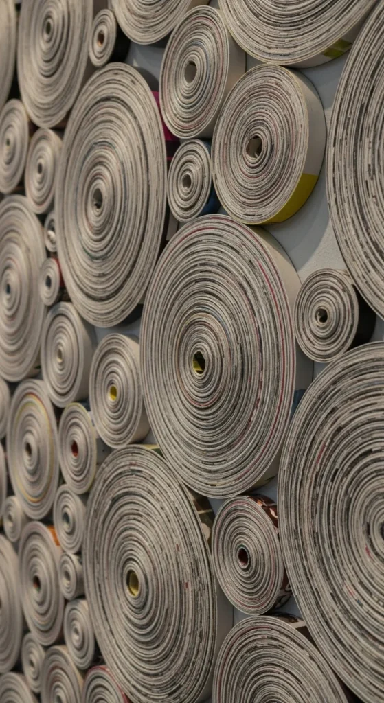 Roll magazine pages into tight coils. Glue them into circles of various sizes. Arrange them in clusters. This colorful project is almost free.