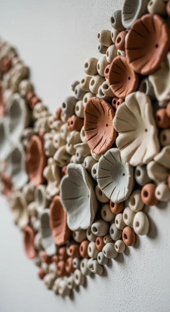 Air-dry clay can be molded into stars, leaves, circles, or abstract pieces. Paint them or leave them natural. Arrange them in a loose wave pattern. This project feels artistic while costing very little.