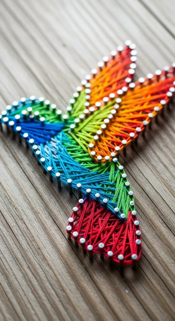 Use a scrap wood board, nails, and thread. Hammer nails into a simple shape such as a star, leaf, or initial. Wrap the string around the nails to build the pattern. Choose thread colors that match your room. This type of wall piece works well in living rooms or hallways. It looks detailed but costs very little.