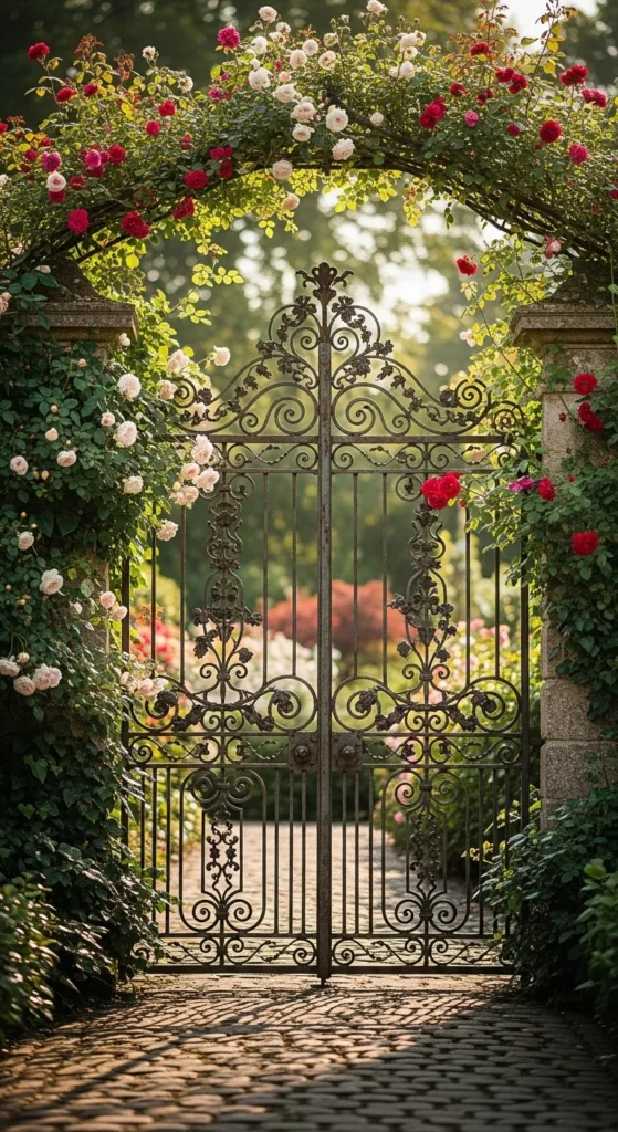Your garden entrance sets the tone for the entire space. Replace a basic gate with a decorative metal or wooden one to create character and charm. Paint it in a contrasting color, like black or forest green, to make it stand out. You can even frame it with climbing plants such as ivy or roses for a fairy-tale effect.