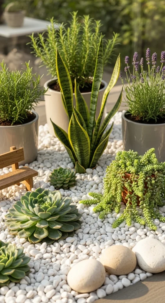 Pebbles can completely change your garden’s look. Use them around flower beds, under benches, or near fountains. They help with drainage and add clean contrast to green foliage. Choose white, black, or natural tones depending on your style.