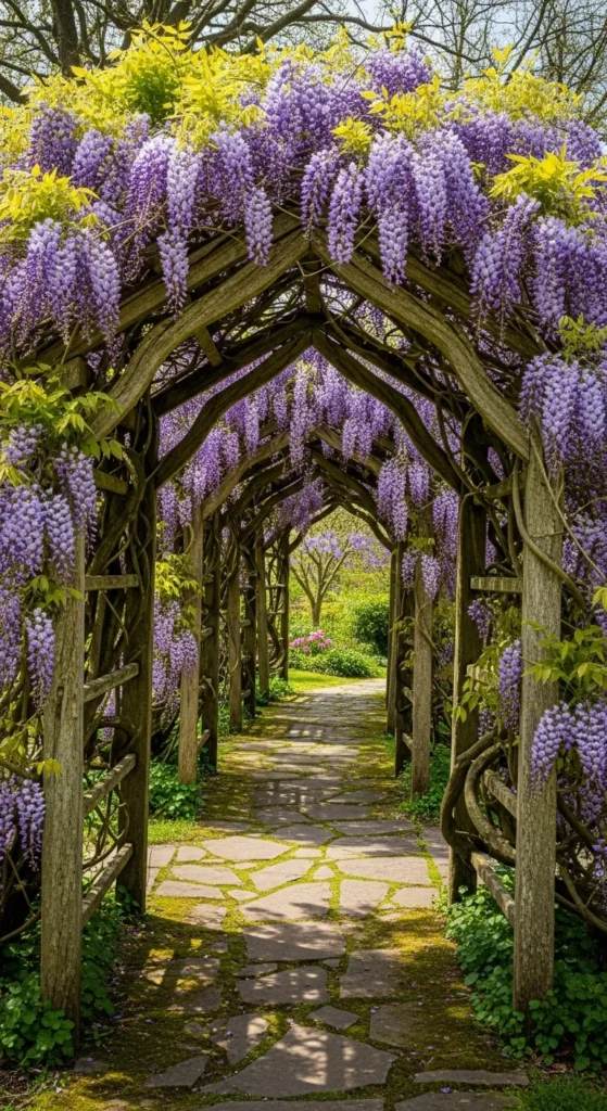 An arch or arbor adds vertical height and romance. Place it at the entrance of a walkway or as a divider between garden sections. Train climbing plants like wisteria, jasmine, or clematis to grow over it for a lush, enchanting effect.