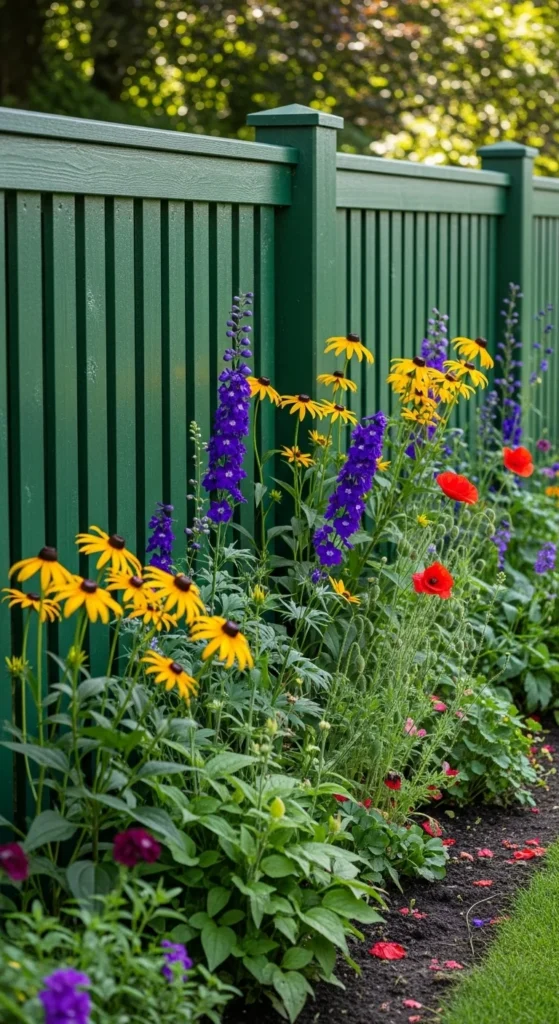 A colorful or cleanly painted fence refreshes the entire garden. Dark tones make greenery pop, while light shades feel airy and open. Consider adding stenciled patterns or murals for personality. This small project offers a big visual impact with minimal cost.