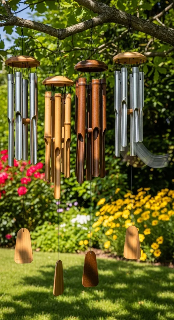 Wind chimes add gentle sound and movement. Choose designs made from bamboo for soft tones or metal for a brighter ring. Hang them near doorways, trees, or pergolas. The soothing sounds make your garden feel calm and inviting.