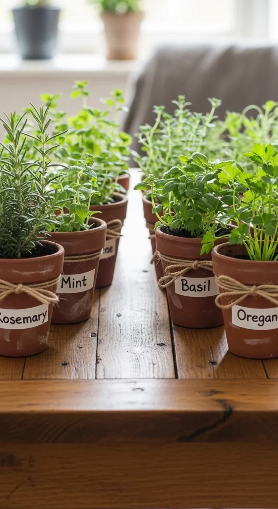 Grow herbs in small pots or garden boxes near your kitchen door. Not only are they practical, but they also look charming and smell amazing. Choose aromatic plants like rosemary, thyme, and basil. Paint or label your pots for a personalized touch.