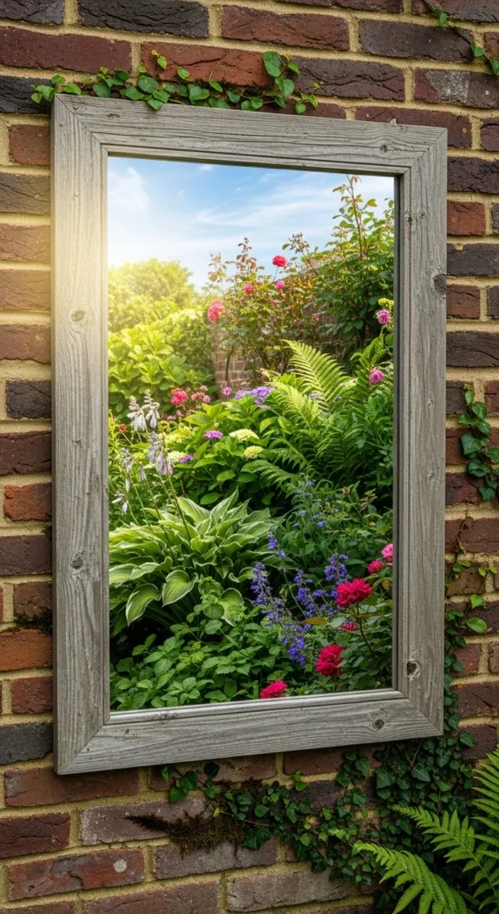 Mirrors make small gardens appear larger and brighter. Place them against walls or fences to reflect light and greenery. Use weatherproof frames made from wood or metal. They create visual depth and an element of surprise in shaded areas.