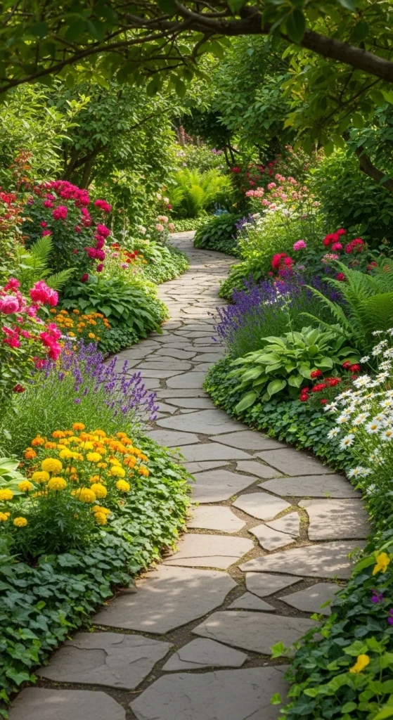 A stone pathway adds both function and charm. Choose natural stones for an organic look or pavers for a clean design. Fill gaps with moss or small groundcover plants. It guides the eye through your garden while adding texture and structure.