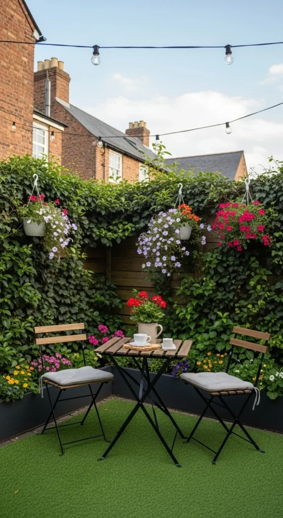 A cozy seating area turns your garden into a relaxing retreat. Add a small table and chairs or even a garden bench under a tree. Use weather-resistant cushions for comfort. String lights or lanterns above complete the look, making it perfect for evening coffee or weekend reading sessions.