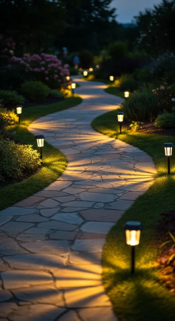 Lighting turns an ordinary garden into a showstopper after dark. Use solar-powered path lights to highlight walkways or borders. They’re energy-efficient and easy to install—no wiring needed. The gentle glow not only improves safety but also enhances curb appeal at night.