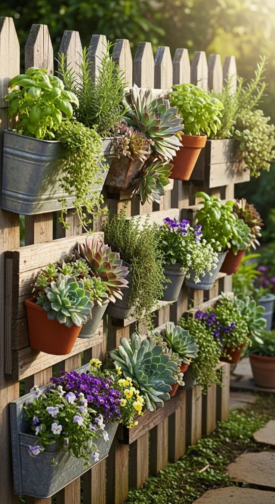 If space is limited, go vertical. Use wall-mounted planters, repurposed pallets, or hanging pots to grow herbs or small flowers. It adds texture and greenery without crowding the ground. Perfect for urban gardens or compact patios.