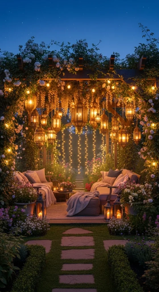 Outdoor lighting adds warmth and romance. Hang lanterns from trees, fences, or pergolas. Choose LED candles for safety and longevity. For a magical touch, drape string lights across the garden to create a dreamy atmosphere for evening gatherings.