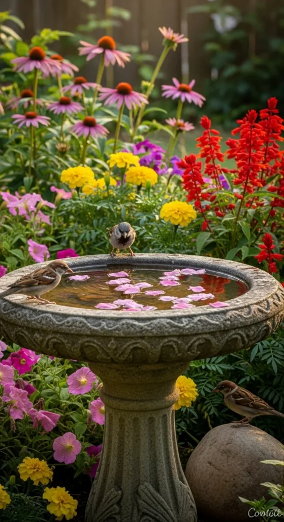 Invite nature into your garden with a bird bath or feeder. It adds movement, sound, and life to the space. Choose a decorative design—stone, metal, or ceramic—to serve as both functional and ornamental. Keep it clean and filled with fresh water to attract local wildlife.