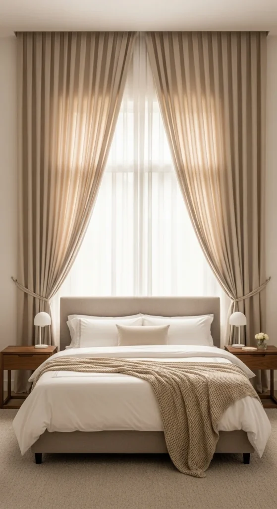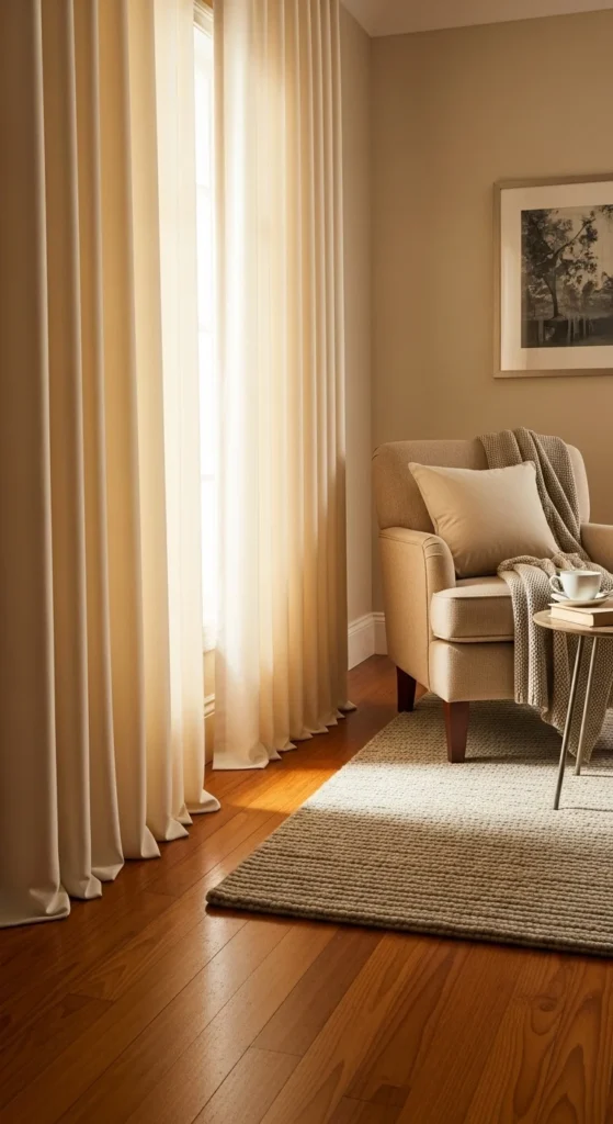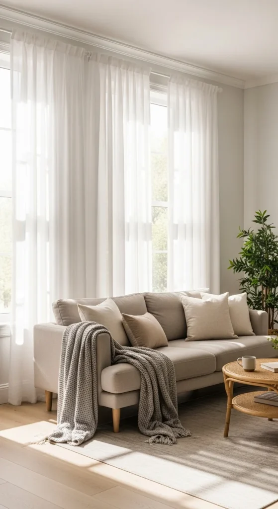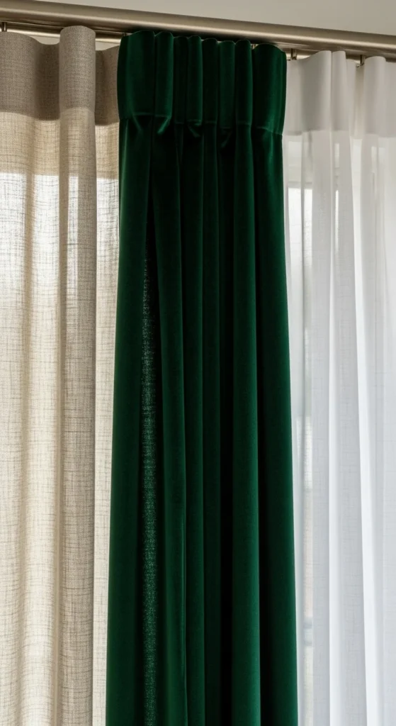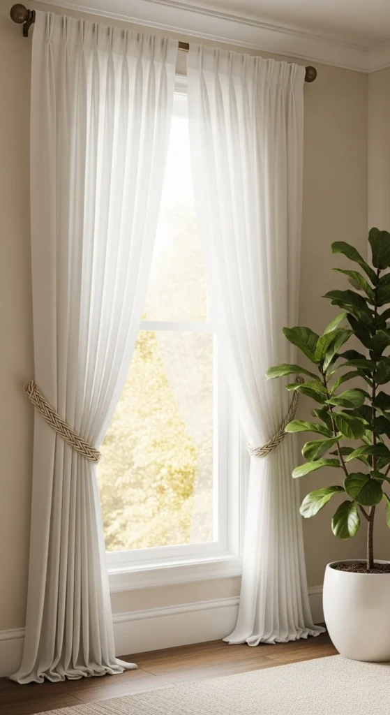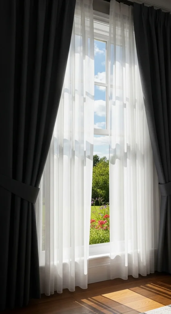 Layering curtains isn’t just pretty—it’s practical. Combine sheers with heavier drapes for flexibility and texture.