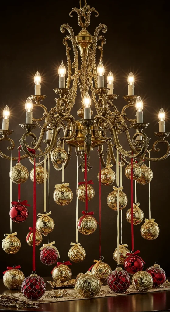Tie ornaments or small pinecones with ribbons and hang them at varying lengths for a playful effect.